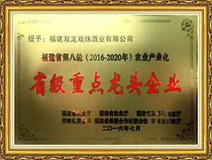 雙龍戲珠酒業(yè)作為福建省白酒研發(fā)中心,榮獲福建老字號(hào)產(chǎn)品、福建省農(nóng)業(yè)產(chǎn)業(yè)化龍頭企業(yè)、福建東南窖酒文化館、科技小巨人領(lǐng)軍企業(yè),國(guó)家守合同、重信用單位等榮譽(yù)。